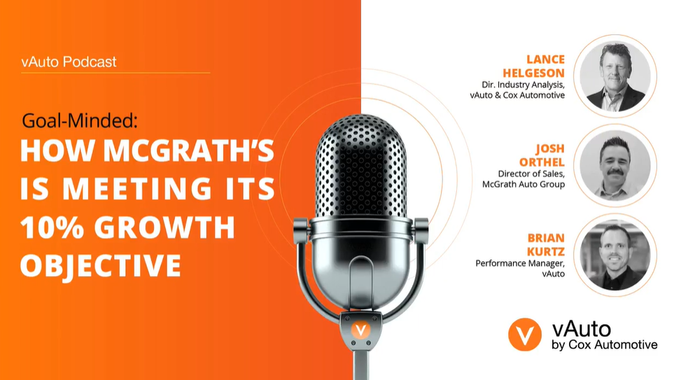 In this vAuto podcast, Josh Orthel, director of sales for the Iowa-based McGrath Group and his vAuto Performance Manager Brian Kurtz discuss how the group is achieving its goal of 10 percent growth in new/used vehicle sales this year.